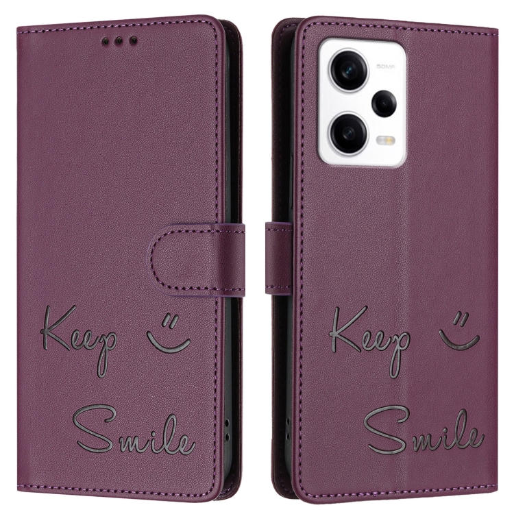 Funda de Cuero Rfid con Relieve Sonriente para Redmi Note 12 Pro+ 5G Global/India (Violeta)