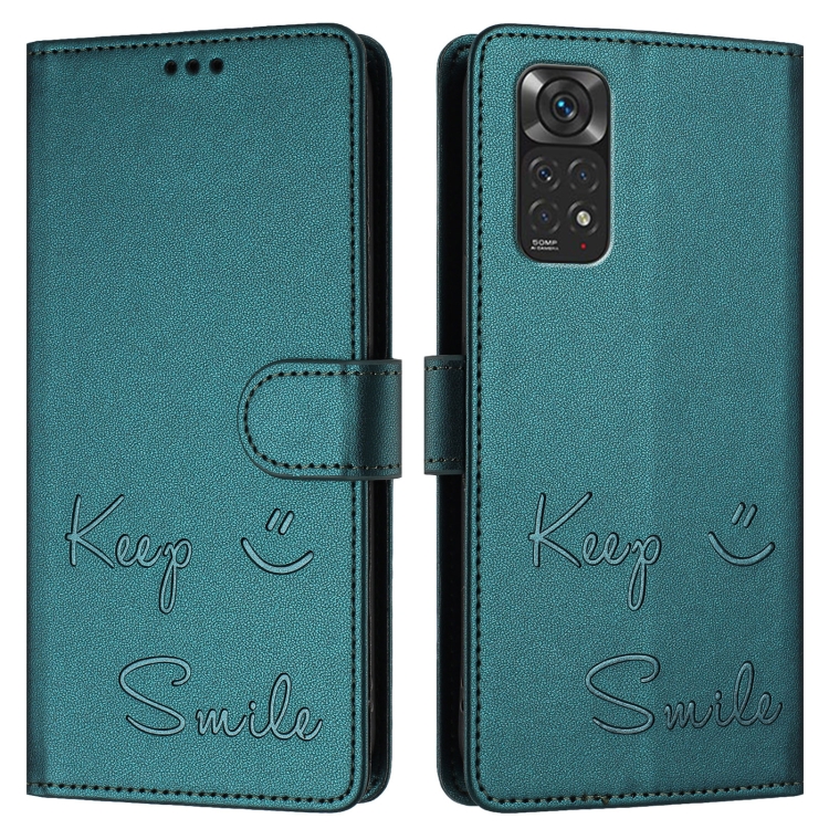Funda de Cuero Rfid con Relieve Sonriente para Redmi Note 12S 4G (Verde Pavo Real)