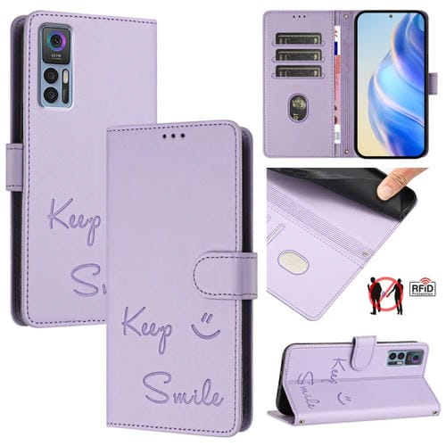 Funda de Cuero Rfid con Relieve Sonriente para TCL 30 4G/30 5G/30 Plus (Morado Claro)