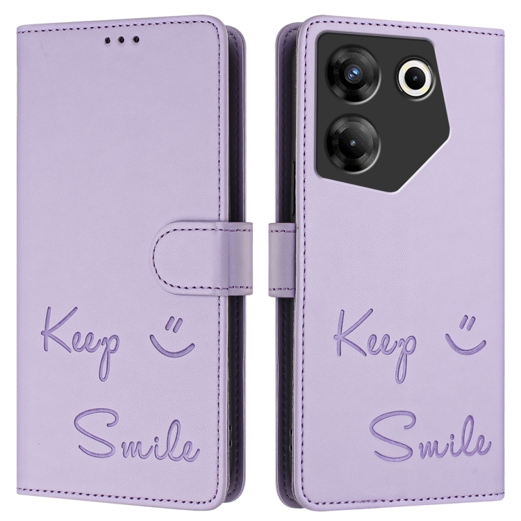 Funda de Cuero Rfid para Tecno Camon 20 Pro 5G con Relieve Sonriente (Morado Claro)