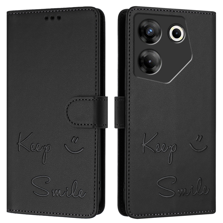 Funda de Cuero Rfid para Tecno Camon 20 Pro 5G con Relieve Sonriente (Negra)