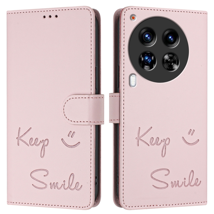 Funda de Cuero Rfid con Relieve Sonriente para Tecno Camon 30 Premier 5G (Rosa)