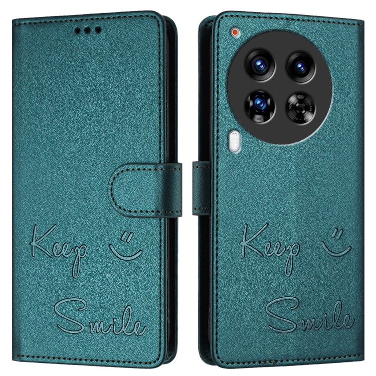 Funda de Cuero Rfid con Relieve Sonriente para Tecno Camon 30 Premier 5G (Verde Pavo Real)