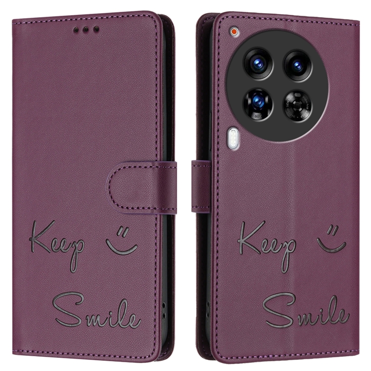 Funda de Cuero Rfid con Relieve Sonriente para Tecno Camon 30 Premier 5G (Violeta)