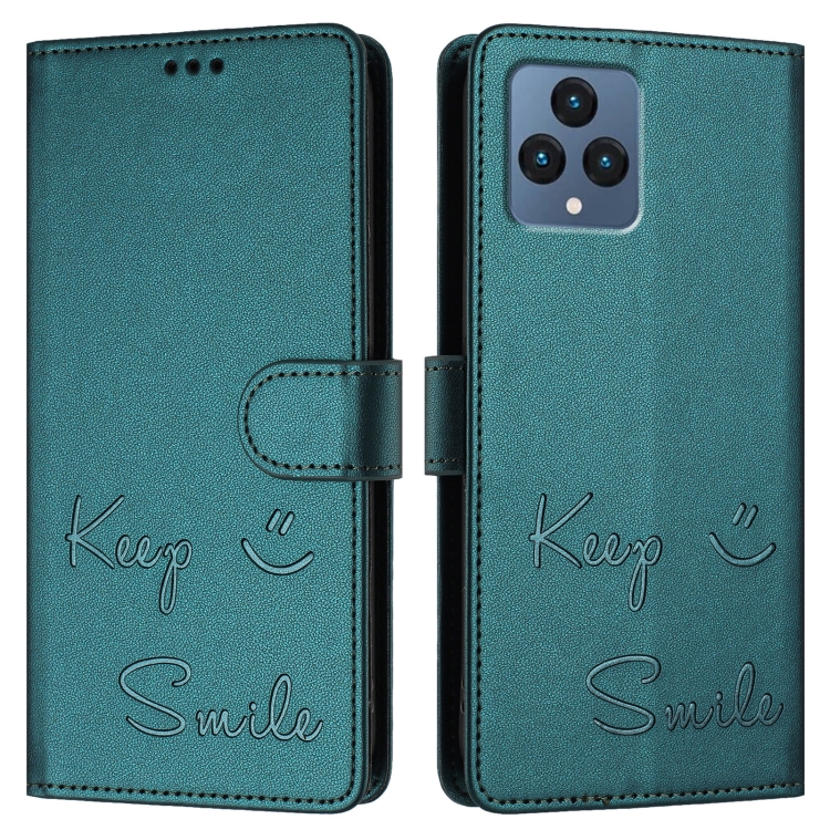 Funda Cuero Rfid Relieve Sonriente para Teléfono T-Mobile Revvl 6/6X 5G (Verde Pavo Real)