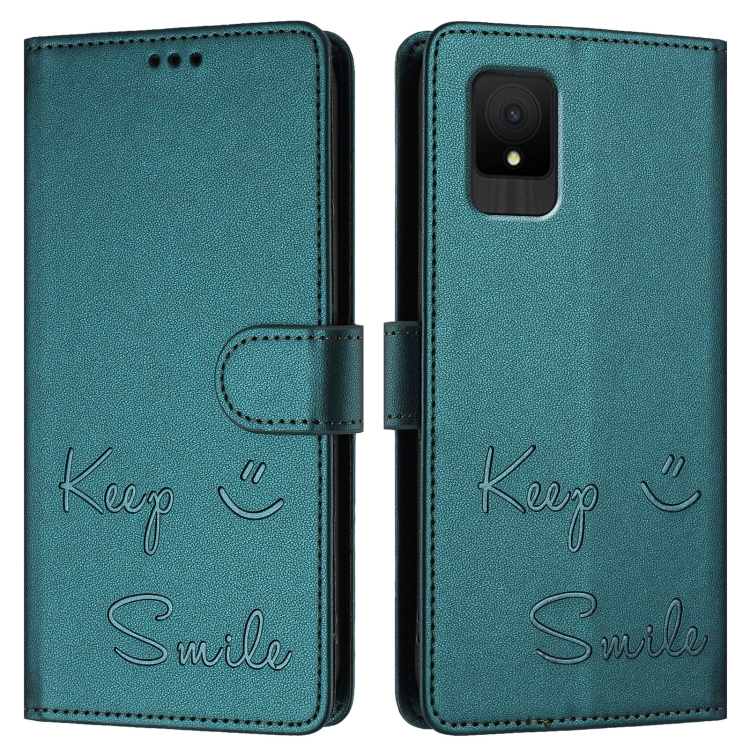 Funda Cuero Rfid con Relieve Sonriente para Teléfono TCL 502 (Verde Pavo Real)