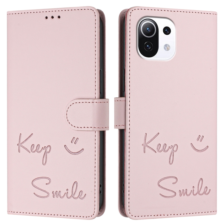 Funda de Cuero Rfid con Relieve Sonriente para Xiaomi 11 Lite 5G Ne (Rosa)