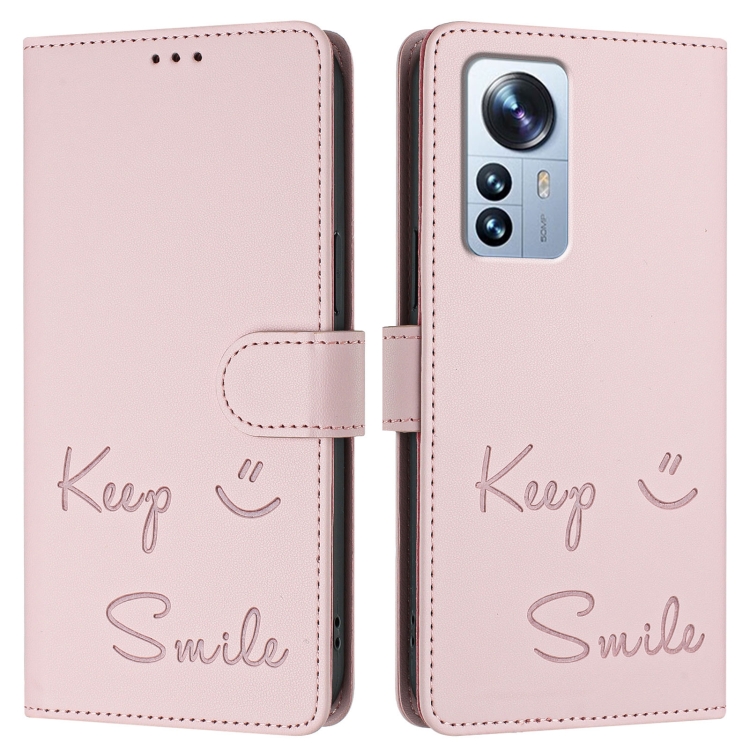 Funda de Cuero Rfid con Relieve Sonriente para Xiaomi 12 Pro/12S Pro (Rosa)