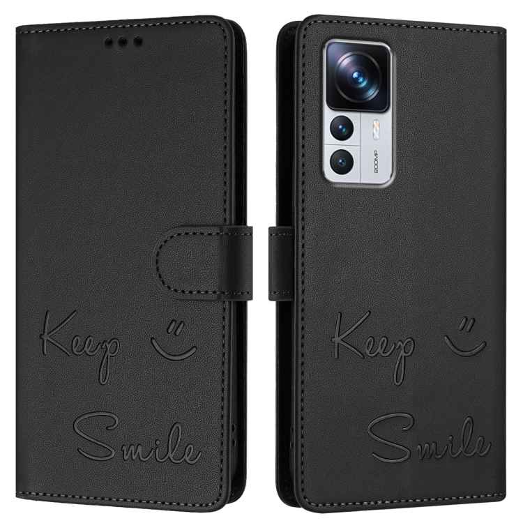 Funda de Cuero Rfid con Relieve Sonriente para Xiaomi 12T/12T Pro (Negra)