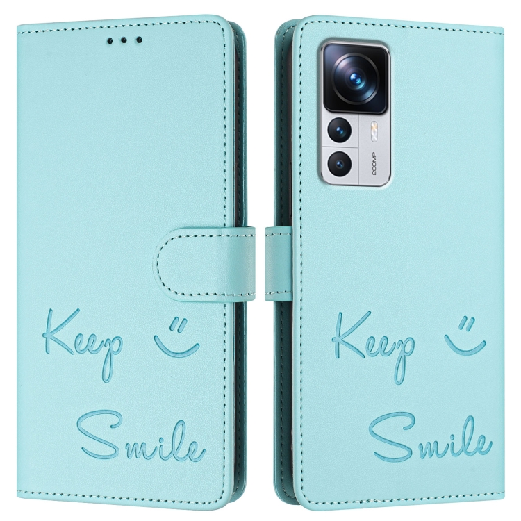 Funda de Cuero Rfid con Relieve Sonriente para Xiaomi 12T/12T Pro (Verde Menta)