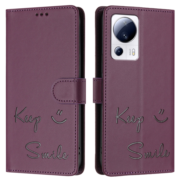 Funda de Cuero Rfid con Relieve Sonriente para Xiaomi 13 Lite/Civi 2 (Violeta)