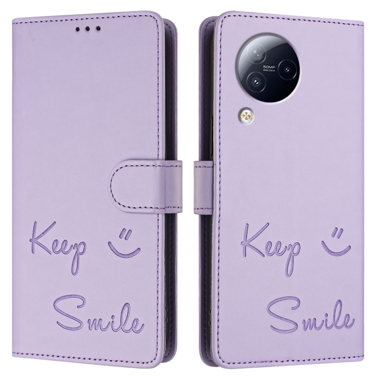 Funda de Cuero Rfid con Relieve Sonriente para Xiaomi Civi 3 (Morado Claro)