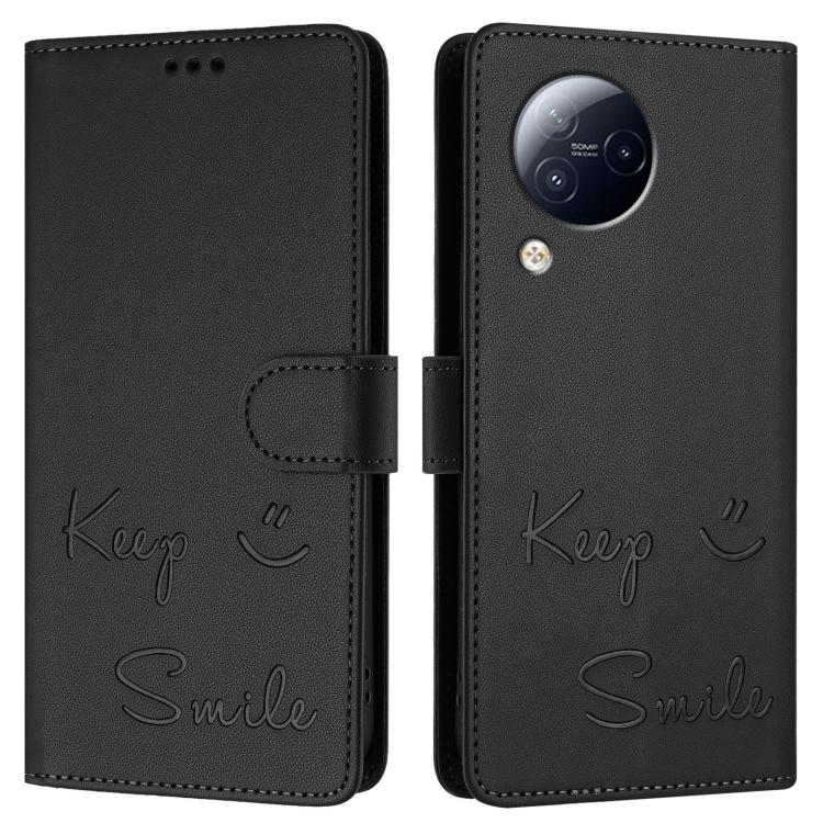 Funda de Cuero Rfid con Relieve Sonriente para Xiaomi Civi 3 (Negra)