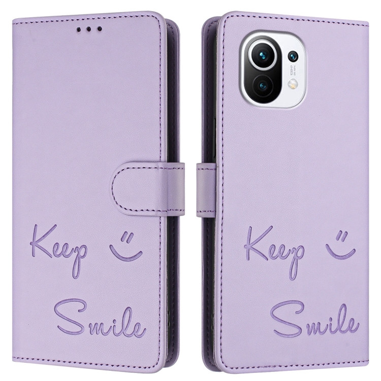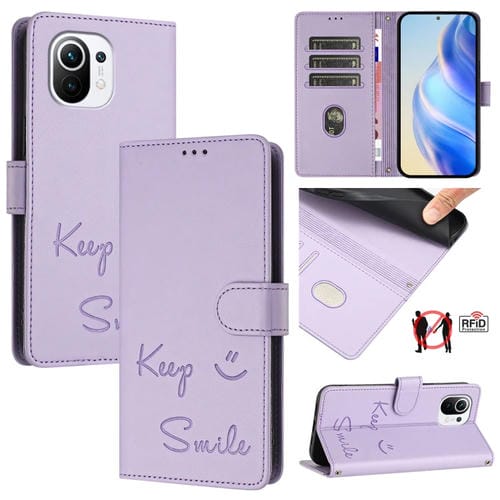 Funda de Cuero Rfid con Relieve Sonriente para Xiaomi Mi 11 (Morado Claro)