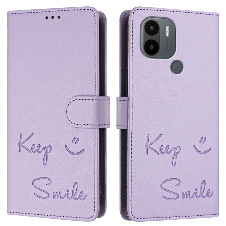 Funda de Cuero Rfid con Relieve Sonriente para Xiaomi Poco C51/C50 (Morado Claro)