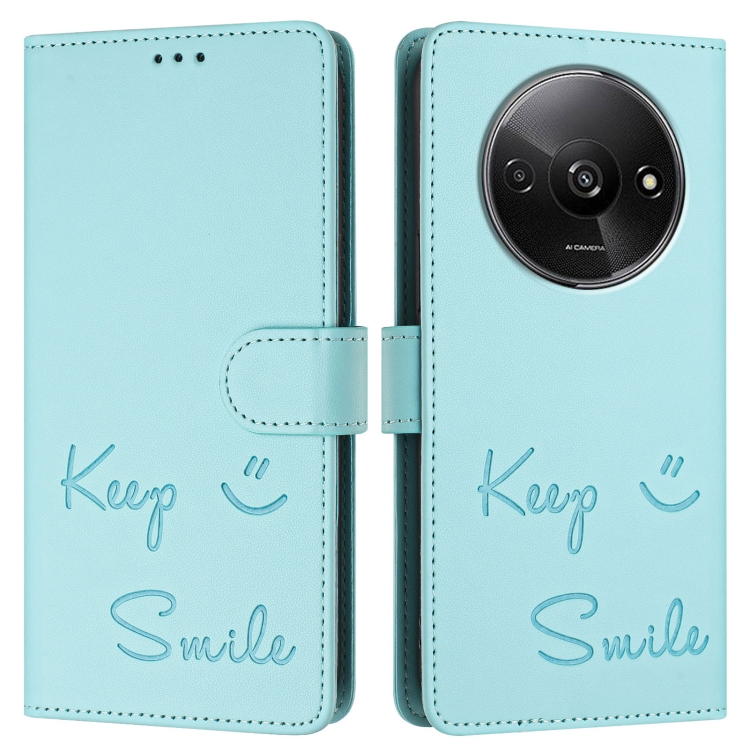 Funda de Cuero Rfid con Relieve Sonriente para Xiaomi Poco C61 (Verde Menta)