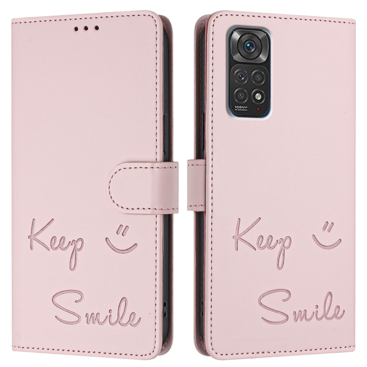 Funda de Cuero Rfid con Relieve Sonriente para Xiaomi Poco M4 Pro 5G (Rosa)