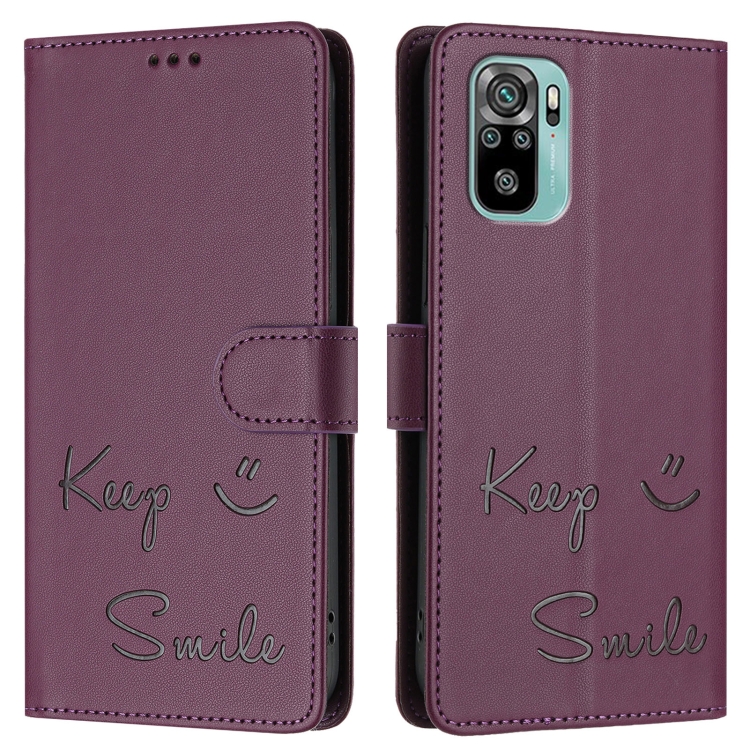 Funda de Cuero Rfid con Relieve Sonriente para Xiaomi Poco M5S (Violeta)