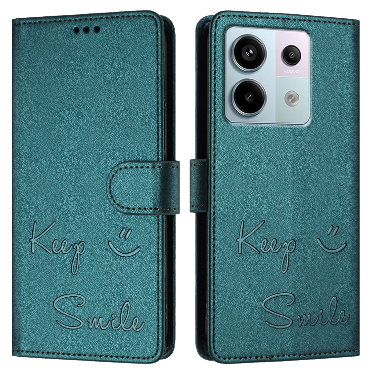 Funda de Cuero Rfid con Relieve Sonriente para Xiaomi Poco X6 (Verde Pavo Real)