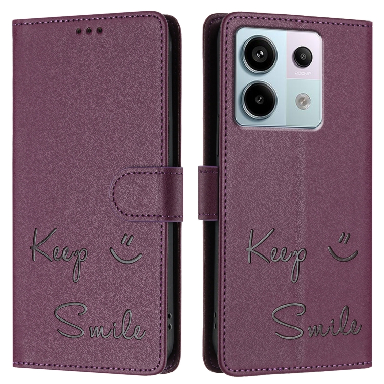 Funda de Cuero Rfid con Relieve Sonriente para Xiaomi Poco X6 (Violeta)