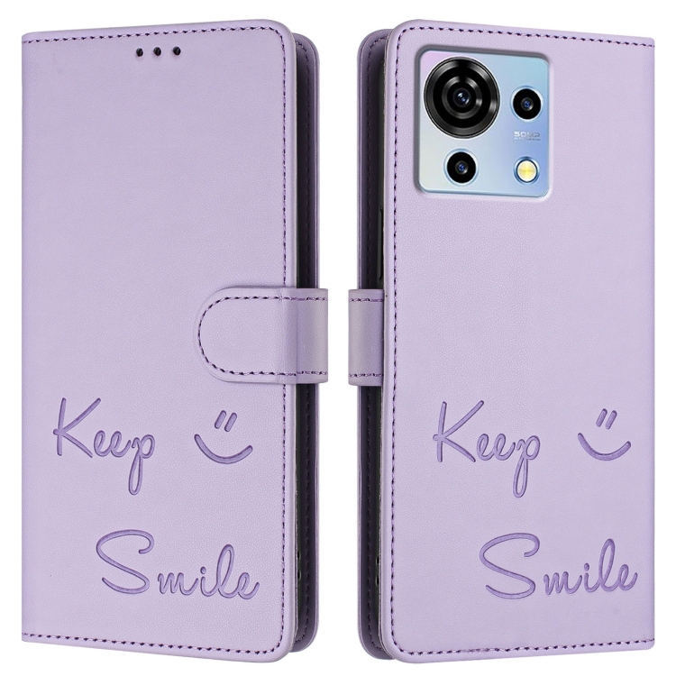 Funda de Cuero Rfid con Relieve Sonriente para ZTE Blade V50 Vita (Morado Claro)