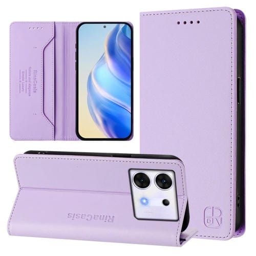 Funda de Cuero Rfid para Infinix Zero 30 5G Rc01 con Succión Magnética y Doble Pliegue (Morado Claro)