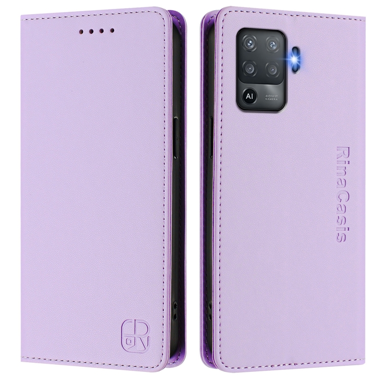 Funda de Cuero Rfid con Doble Pliegue y Succión Magnética para Oppo F19 Pro Rc01 (Morado Claro)