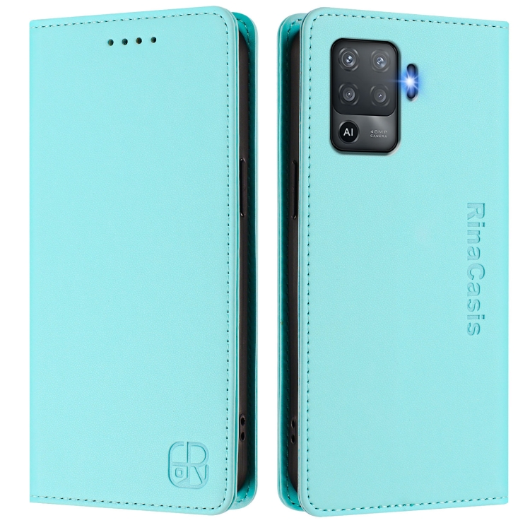 Funda de Cuero con Doble Pliegue y Succión Magnética Rfid para Oppo F19 Pro Rc01 (Verde Menta)