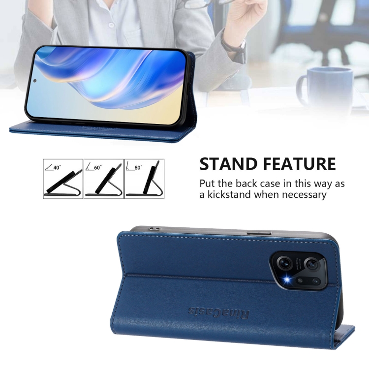 Funda de Cuero Rfid con Doble Pliegue y Succión Magnética para Oppo Find X5 Rc01 (Azul Oscuro)