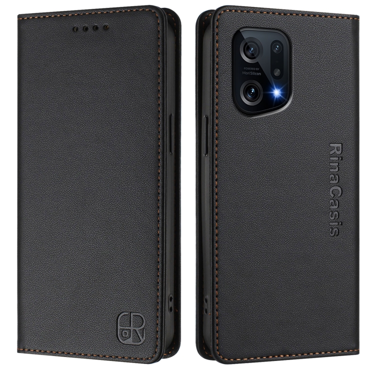 Funda de Cuero Rfid con Doble Pliegue y Succión Magnética para Oppo Find X5 Rc01 (Negra)