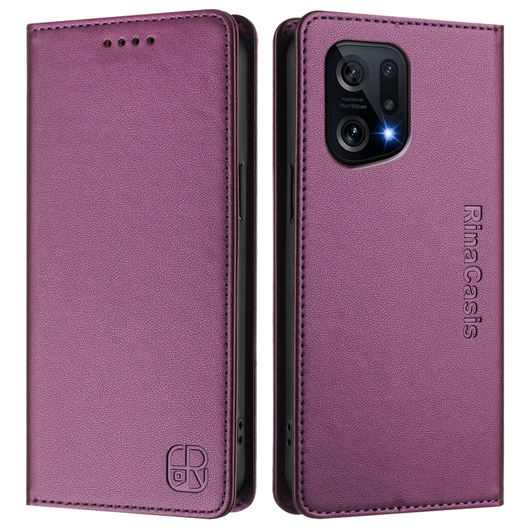 Funda de Cuero Rfid con Doble Pliegue y Succión Magnética para Oppo Find X5 Rc01 (Violeta)