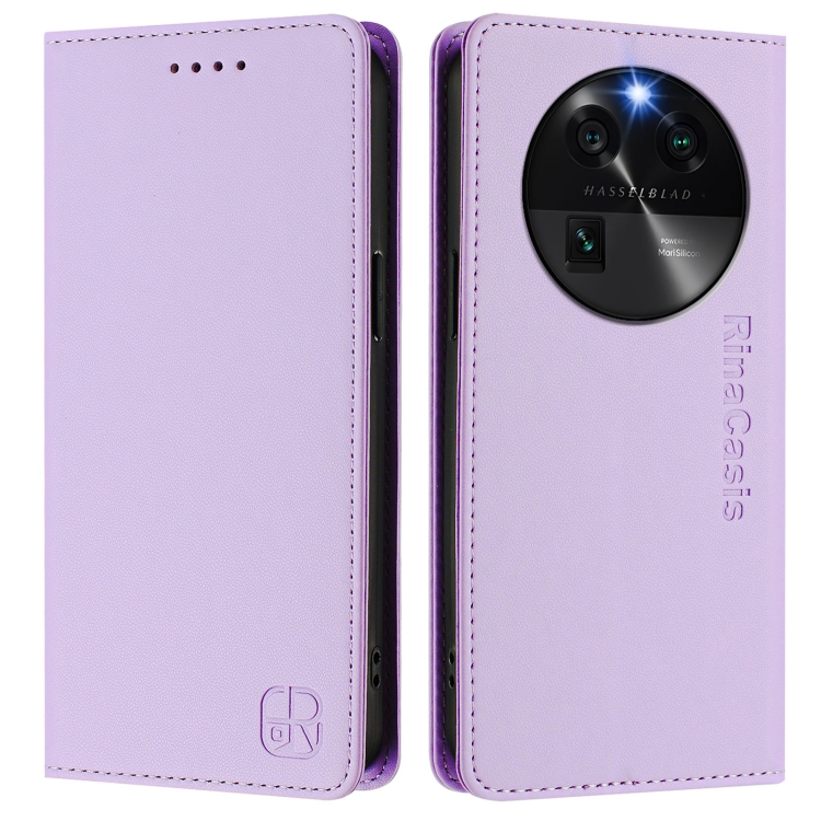 Funda de Cuero Rfid con Doble Pliegue y Succión Magnética para Oppo Find X6 Rc01 (Morado Claro)