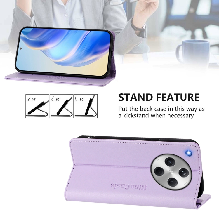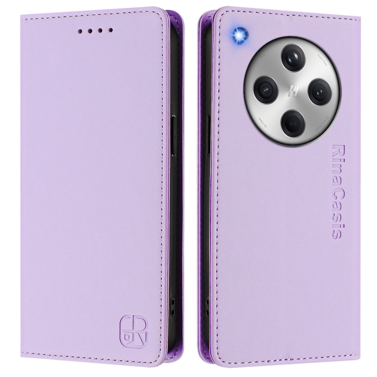 Funda de Cuero Rfid con Doble Pliegue y Succión Magnética para Oppo Find X8 Rc01 (Morado Claro)