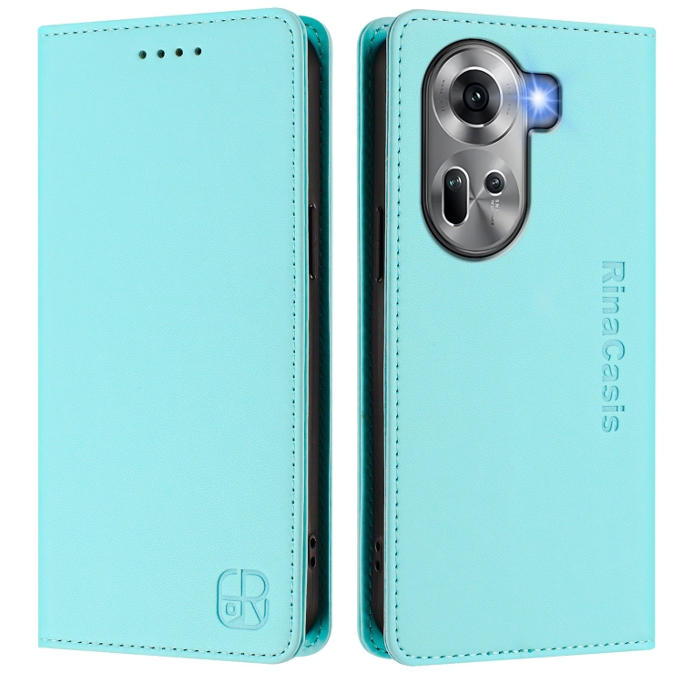 Funda de Cuero con Doble Pliegue y Succión Magnética Rfid para Oppo Reno11 5G Global Rc01 (Verde Menta)