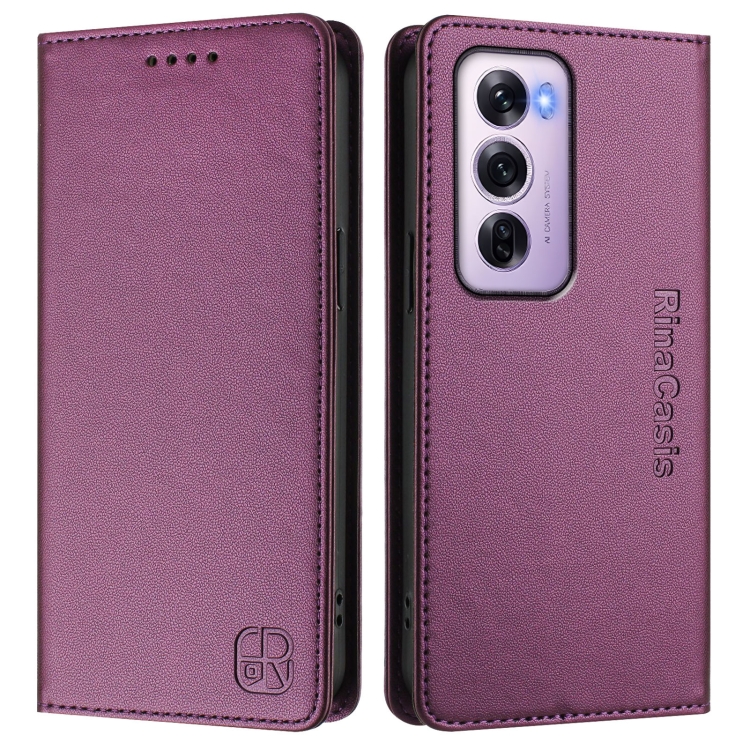 Funda de Cuero con Doble Pliegue y Succión Magnética Rfid para Oppo Reno12 Pro 5G Global Rc01 (Violeta)