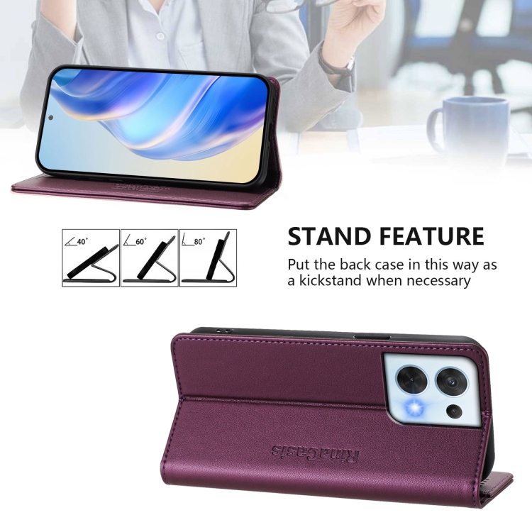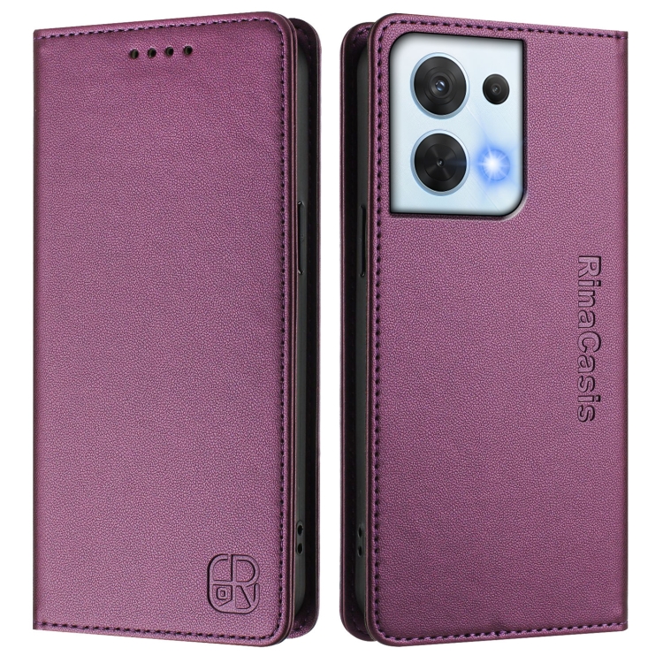 Funda de Cuero con Doble Pliegue y Succión Magnética Rfid para Oppo Reno8 5G Rc01 (Violeta)