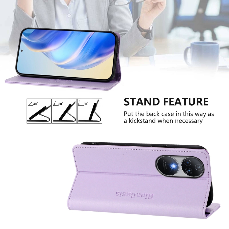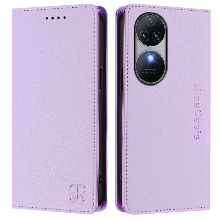 Funda de Cuero Rfid con Succión Magnética y Doble Pliegue para Oukitel C38 Rc01 (Morado Claro)