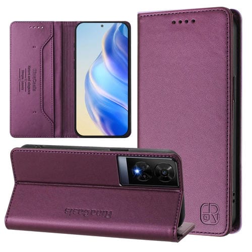 Funda de Cuero Rfid para TCL 50 Xe Rc01 con Succión Magnética y Doble Pliegue (Violeta)
