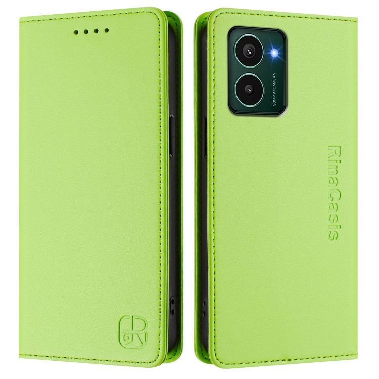 Funda de Cuero Rfid para Teléfono Hmd Pulse / Pulse Pro / Pulse+ Rc01 con Succión Magnética y Doble Pliegue (Verde Hierba)