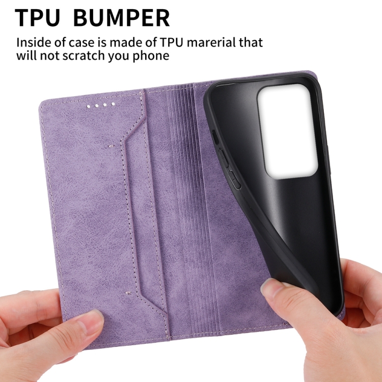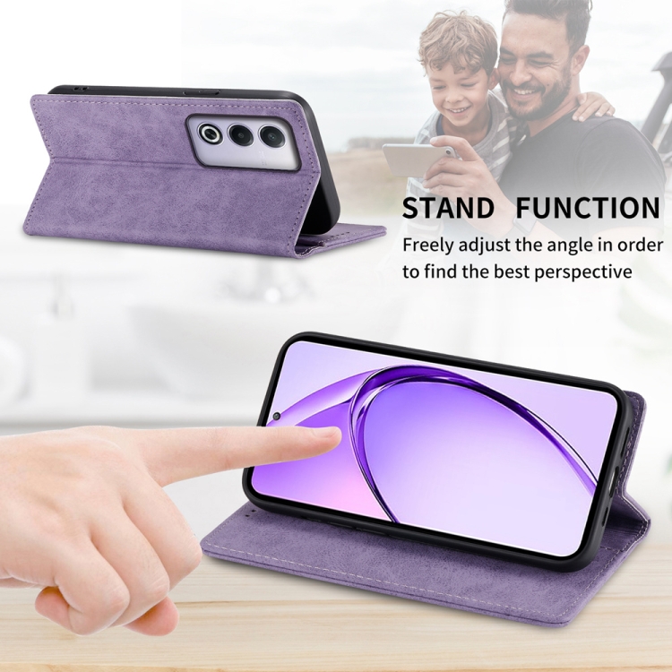 Funda de Cuero Rfid Magnética de Color Sólido para Teléfono Oppo A3 Pro 5G (Morado)