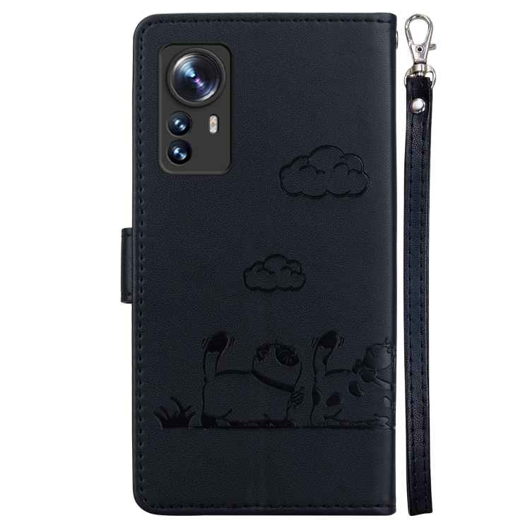 Funda de Cuero Rfid con Diseño de Gatos para Xiaomi 12/12X (Negra)