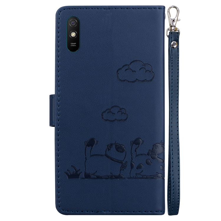 Funda de Cuero Rfid con Diseño de Gatos para Redmi 9A/9I Sport (Azul)