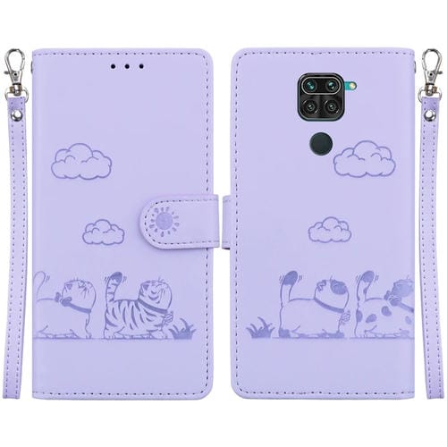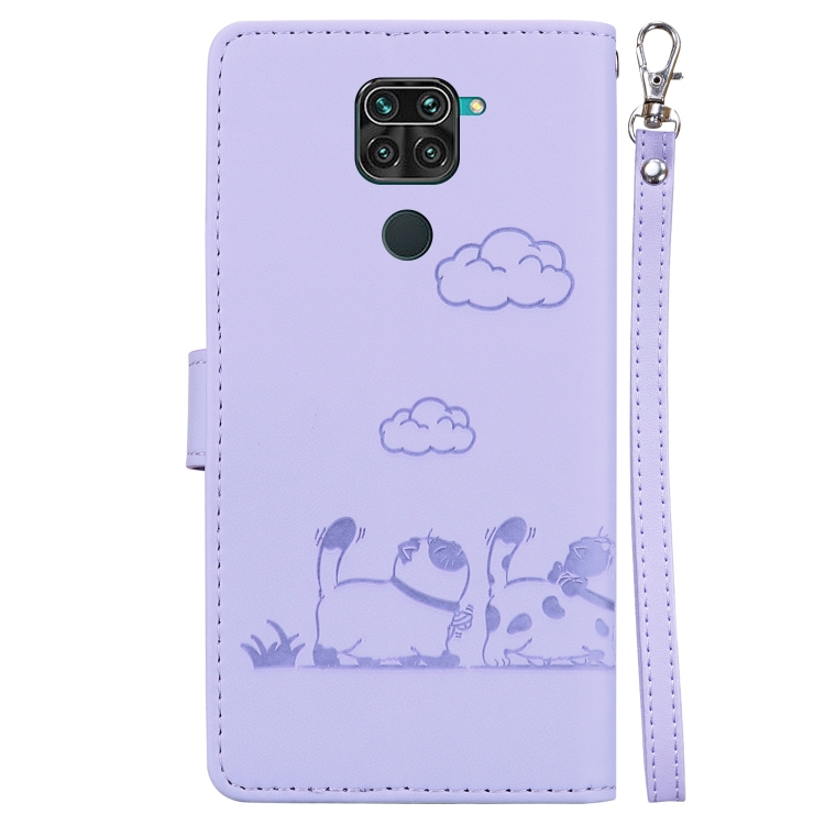 Funda de Cuero Rfid con Diseño de Gatos para Redmi Note 9/10X 4G (Morada)
