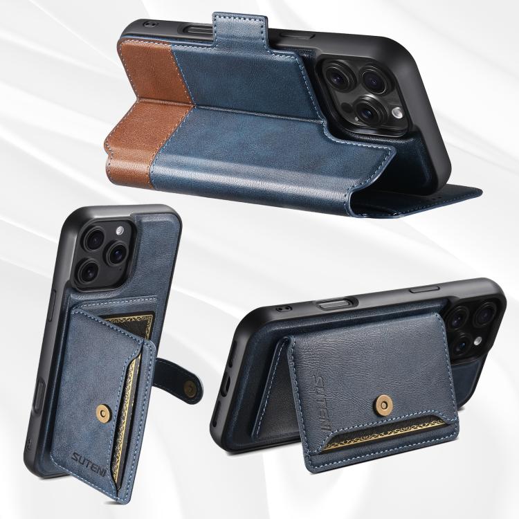 Funda de cuero Suteni Q06S1 3 en 1 con cierre magnético y desmontable para iPhone 12 Pro (azul)