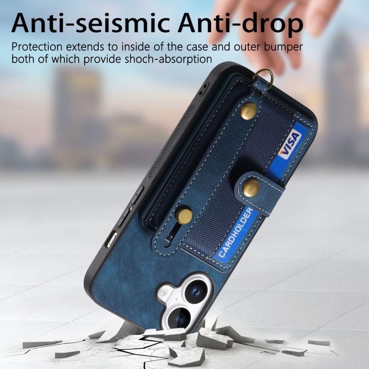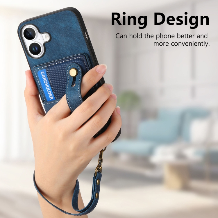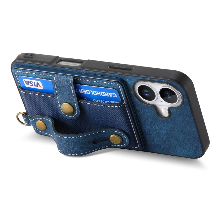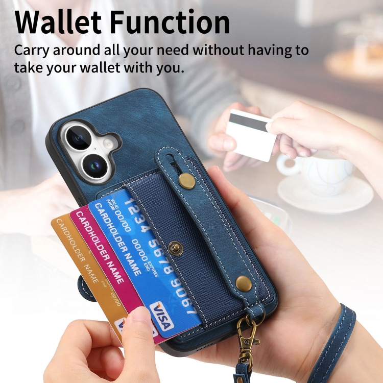 Funda de Cuero Tipo Billetera con Correa Cruzada Retro para iPhone 16 (Azul)
