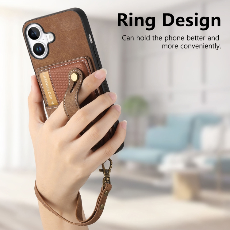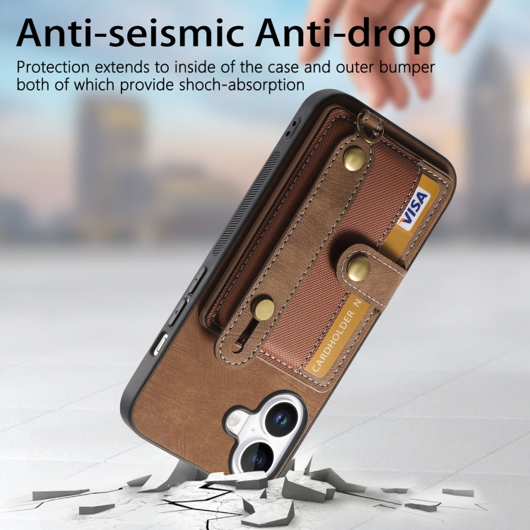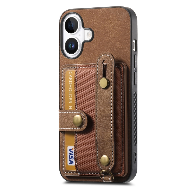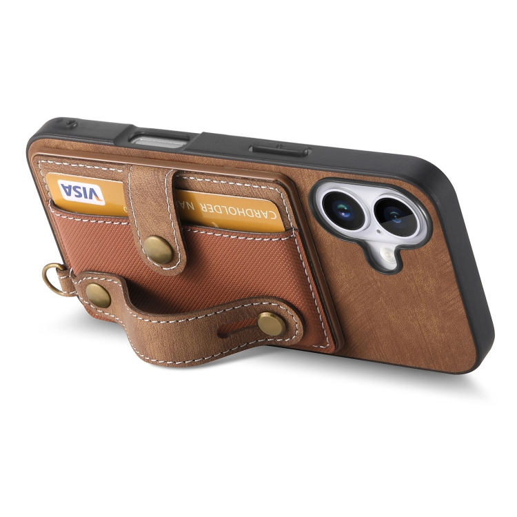Funda Tipo Billetera Cuero con Correa Cruzada para iPhone 16 (Marrón)