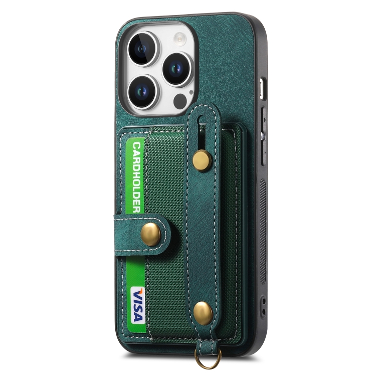 Funda de Cuero Tipo Billetera con Correa Cruzada Retro para iPhone 16 Pro (Verde)