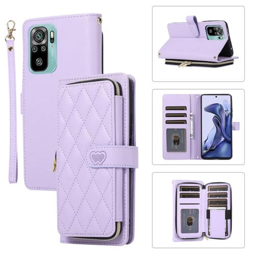 Funda de Cuero Tipo Billetera con Cremallera Completa y Diseño Rombal para Redmi Note 10/10S (Morado)