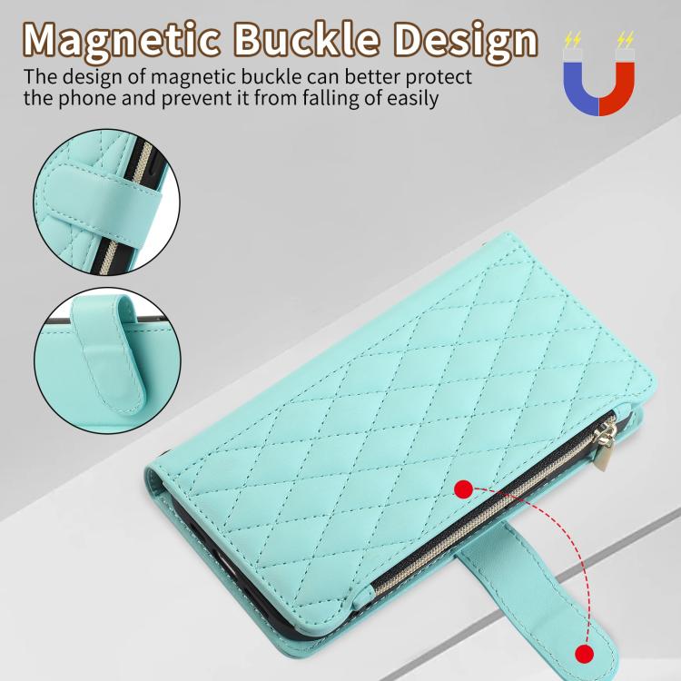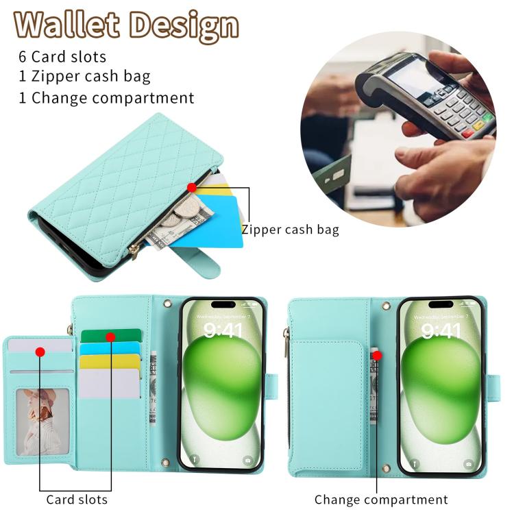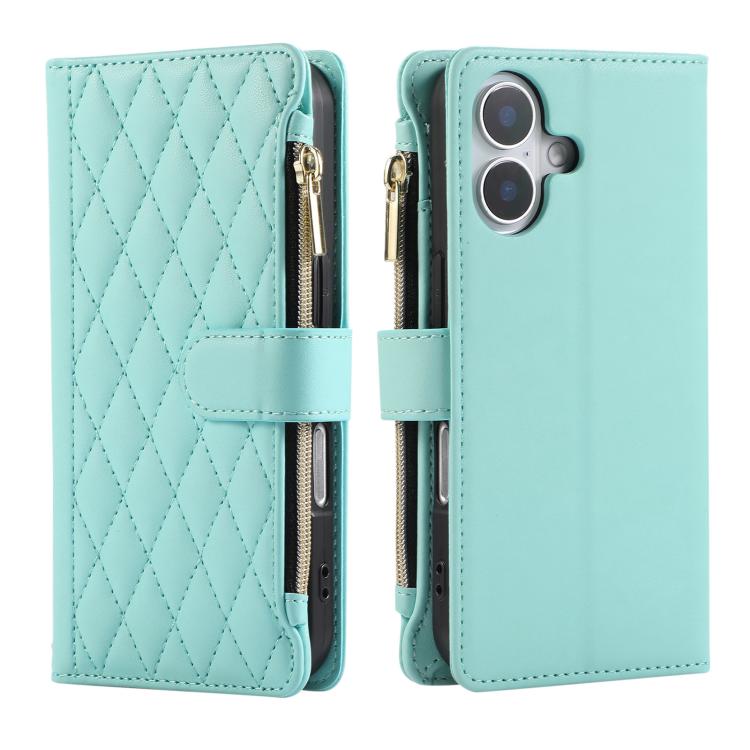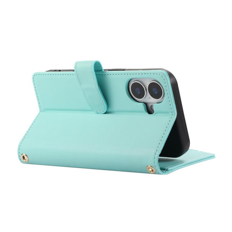 Funda de Cuero Tipo Billetera con Cremallera para iPhone 16 (Cian)