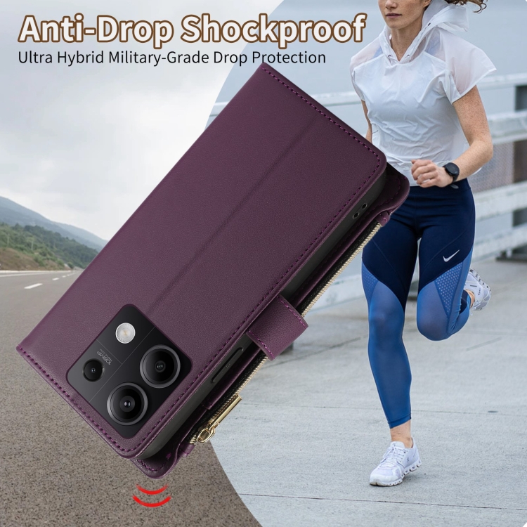 Funda de Cuero Tipo Billetera con Cremallera Rombal para Redmi Note 13 5G (Morado Oscuro)